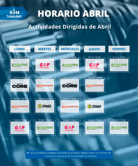GYM TAMAIMO - HORARIOS DE ACTIVIDADES DISPONIBLES